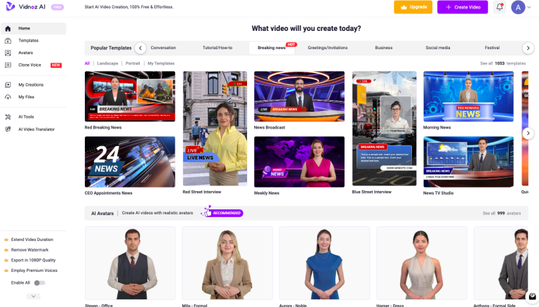- Choose a Template & Avatar: Select from a variety of templates and avatars to start your project.